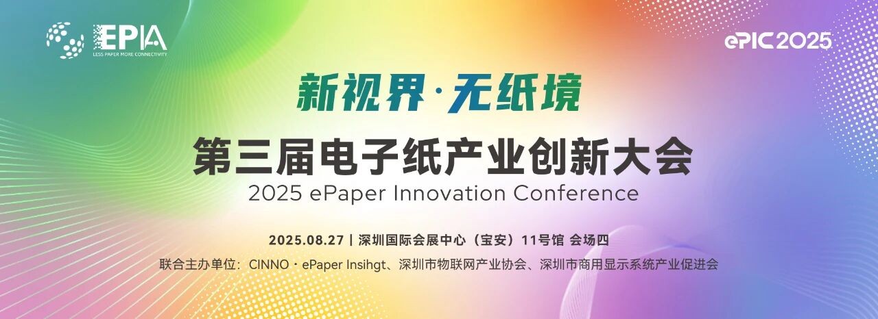 2025 年 8 月 27 日,由电子纸产业联盟指导,CINNOePaper Insight、深圳市物联网产业协会、深圳市商用显示系统产业促进会联合主办的「第三届电子纸产业创新大会(ePIC 2025)」在深圳国际会展中心第二十四届国际物联网展期间盛大召开。来自行业协会领导、权威专家、产业链上下游企业代表等齐聚一堂,围绕电子纸产业技术创新、应用拓展、生态构建等核心议题展开深入探讨,共同推动电子纸产业迈向新高度。