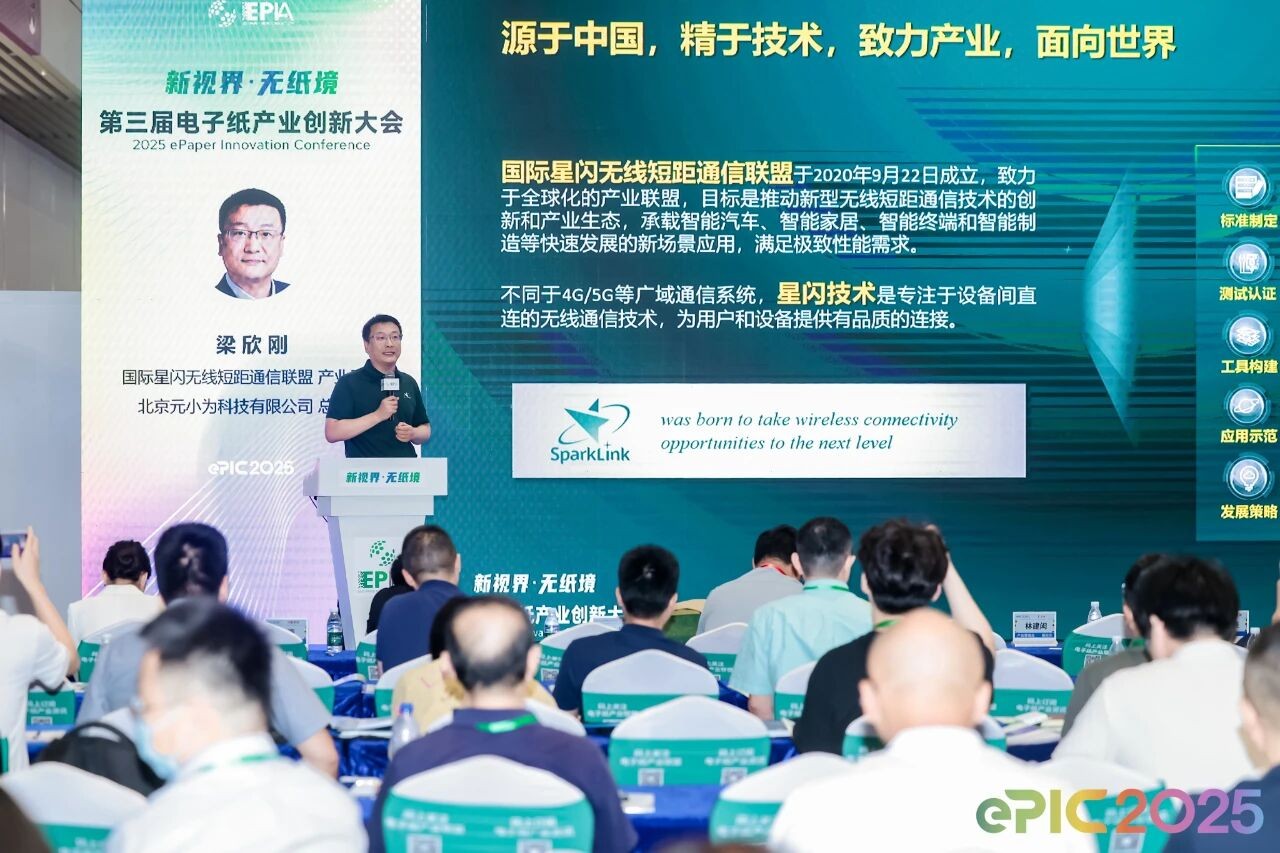 国际星闪无线短距通信联盟产业顾问、北京元小为科技有限公司总经理梁欣刚发表《星闪技术为电子纸产业创新赋新能》主题演讲,探讨了星闪短距无线通信技术与电子纸产业结合的新机遇。