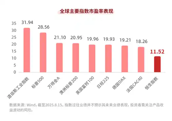放眼全球,港股的市盈率都具备一定的性价比。即便经历了今年的连续上涨,截至8月15日,港股目前仍处于近10年以来75%分位,或仍具有一定的安全边际。同时,恒生指数市盈率仅为11.52,在全球主要市场中具备明显性价比。