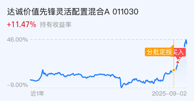我加仓$达诚价值先锋灵活配置A(OTCFUND|011030)$1000元。终于蹲来调整了,小欧果断定投一份,从布局以来,走势一路震荡上行,我的收益率也是突破了11%!这只是灵活配置型基金,主打一个灵活,基金经理会根据市场行情捕捉机会,不必死守一个方向。