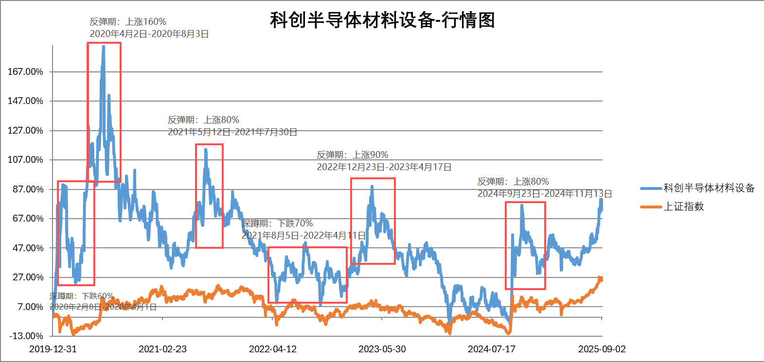 数据来源:Wind,数据区间:2019.12.31-2025.9.3。科创半导体设备材料指数2020-2024年完整会计年度业绩为:67.41%、-5.14%、-25.65%、14.99%、-0.13%。指数业绩不代表基金业绩,历史业绩不代表未来预测。