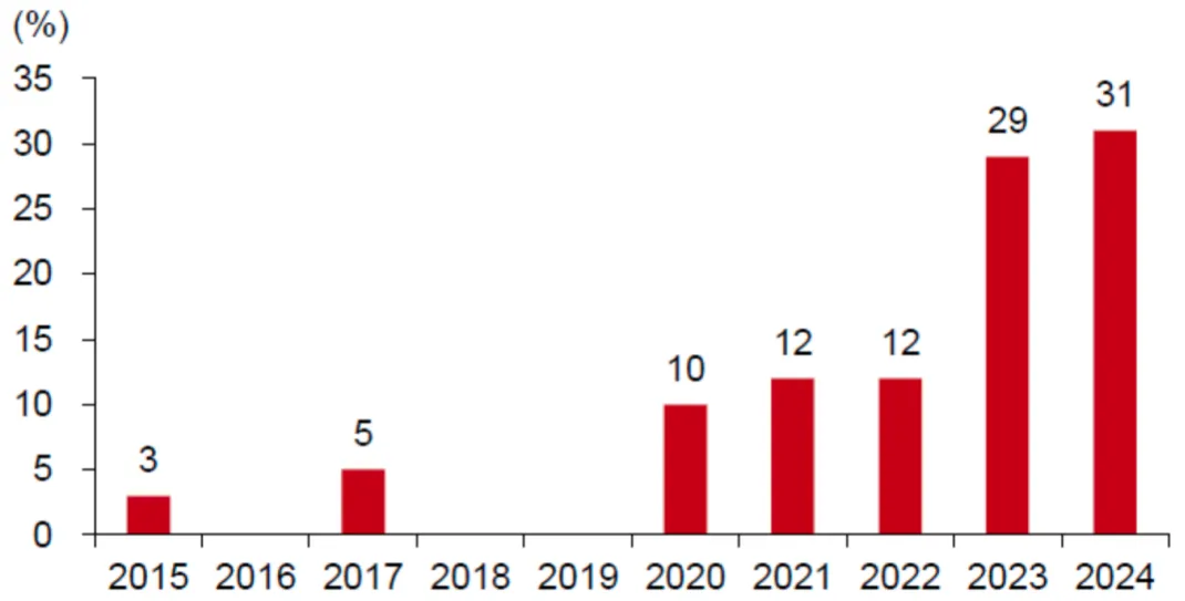 图:MNC达成创新药交易中来自中国的数量占比