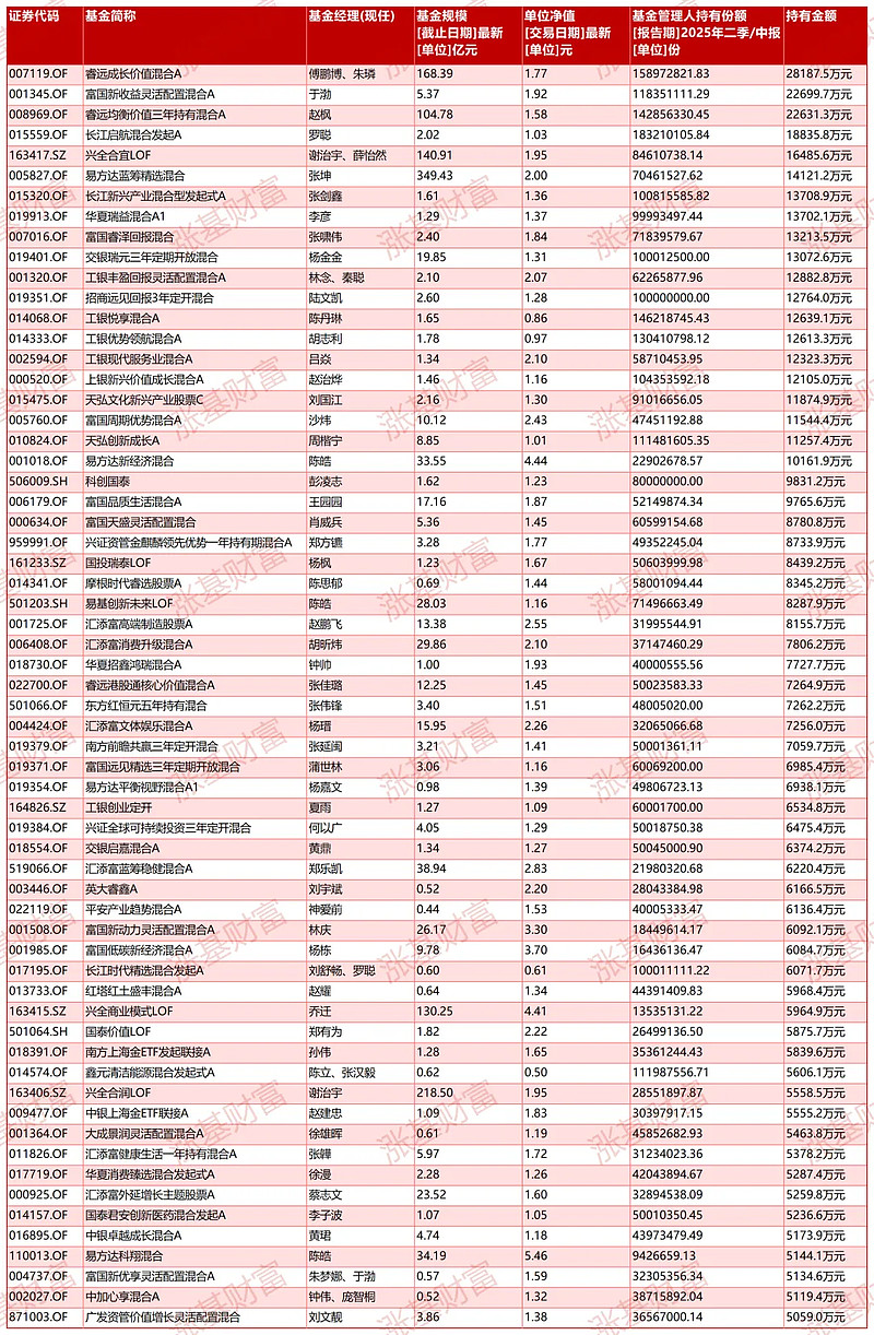 如果6月后一直没卖的话,睿远基金持有睿远成长价值混合A超2.8亿、持有睿远均衡价值超2.2亿,富国持有富国新收益灵活配置A超2.2亿、富国睿泽回报超1.3亿,兴证全球持有兴全合宜超1.6亿,易方达持有易方达蓝筹精选超1.4亿、易方达新经济混合超1亿。
