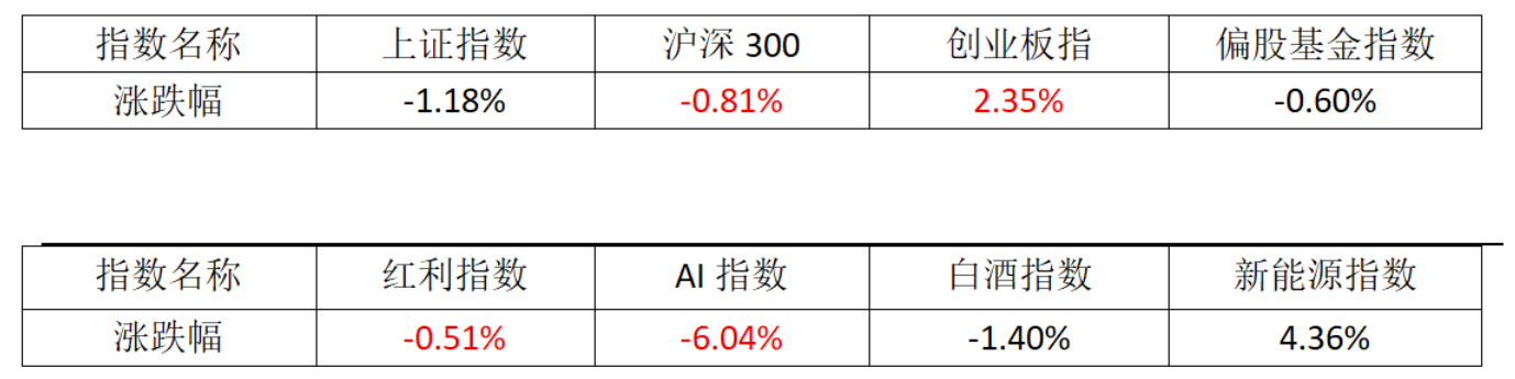 上周A股整体震荡,日均成交量较前一周有所下降,继续处于高水平。创业板周表现继续跑赢沪深300,红利周表现强于AI,新能源表现强势。或许主要受市场整体震荡,成长风格在AI和新能源等板块高低切换影响。