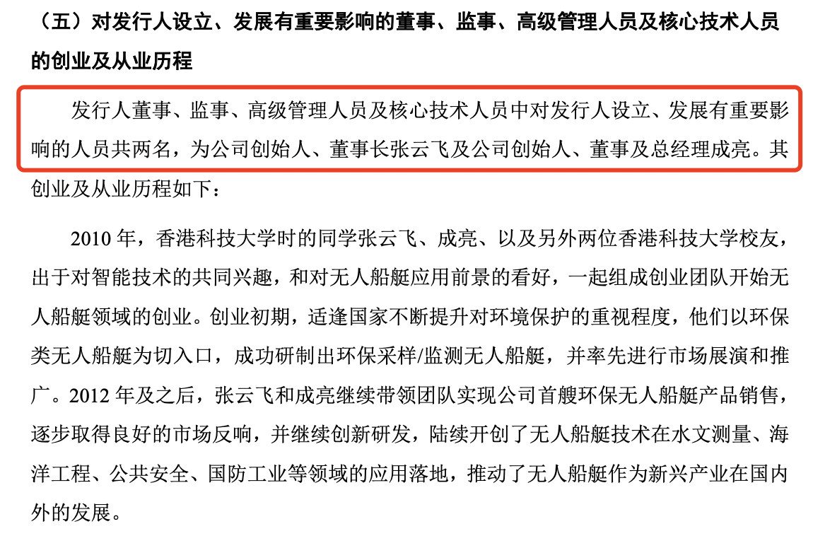 值得一提的是,云洲智能的董监高及核心技术人员中对公司设立、发展有重要影响的人员共两名,为公司创始人、董事长张云飞及公司创始人、董事及总经理成亮。