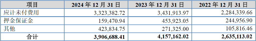 招股书中发行人披露的按款项性质列示其他应付款余额情况,如下表所示: