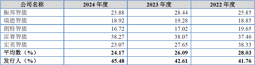 招股书中披露的毛利率与可比公司毛利率比较情况,如下表所示: