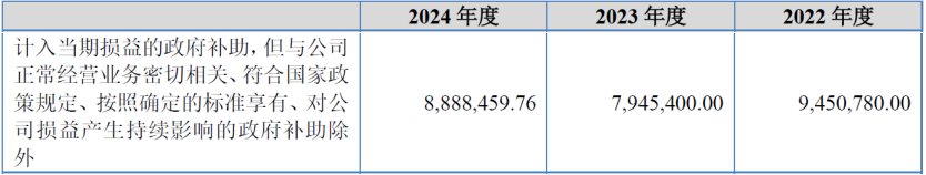 从上表可见,发行人2022年末其他应付款余额为263.51万元。但在随后的其他应付款科目具体情况及分析说明披露:“公司报告期各期末其他应付款金额分别为413.51万元、415.72万元和390.67万元……。”此处披露的2022年末其他应付款余额为413.51万元(且与报表中一致),二者明显不一致,不知上表该263.51万是何出处。当然作为偶发性错误我们可以理解,但可能让人难以理解的是,与其他应收款余额类似问题还继续存在,发行人计入当期损益的政府补助额也同样存在前后不一致问题,情况或许就不那么简单了。