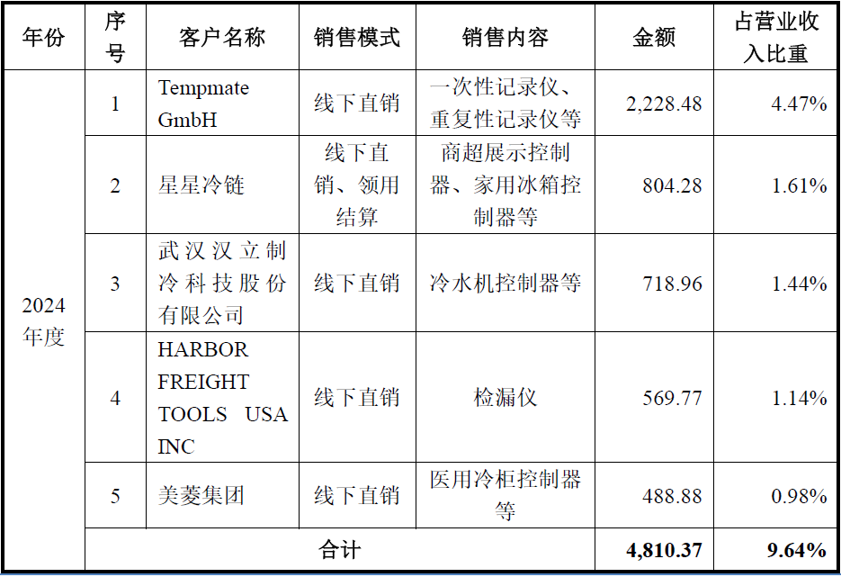招股书中披露的2024年度对前五大客户的销售情况,具体如下表所示: