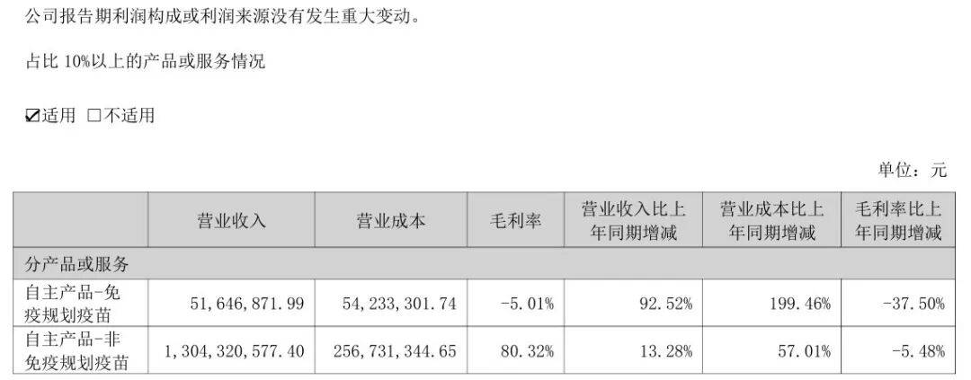更棘手的是免疫规划疫苗(一类疫苗)的“增收反亏”困境。该板块上半年营收5164.7 万元,同比激增92%,看似是重要增长极,毛利率却断崖式下滑37.5个百分点至-5.01%,陷入“卖得越多、亏得越多”的怪圈。