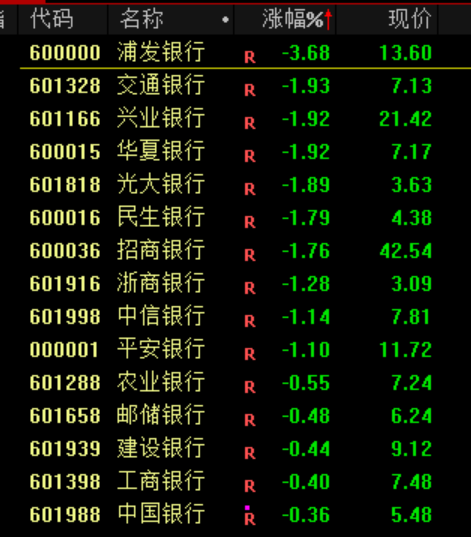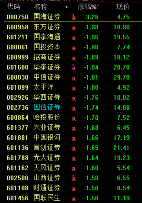 下跌方面,银行、券商等金融股走低,浦发银行跌超3%。