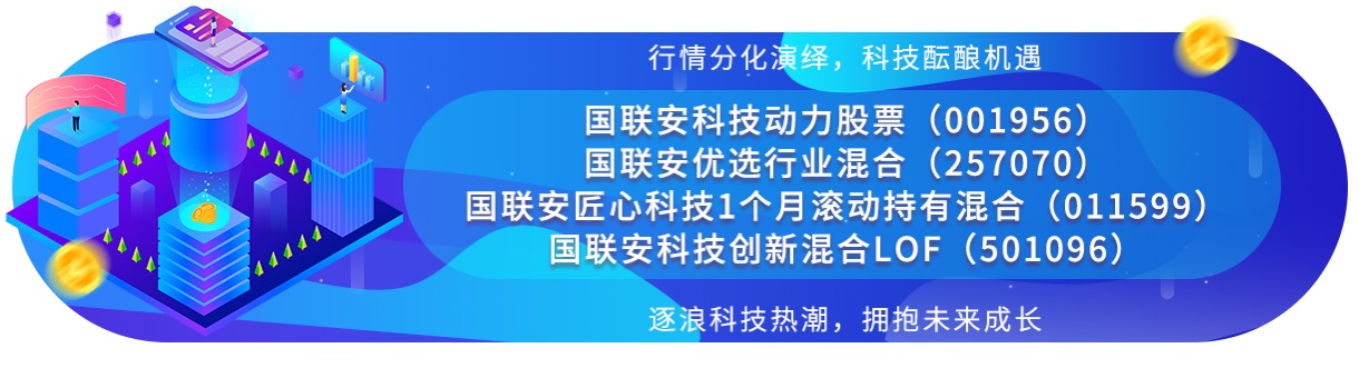 风险提示:基金投资有风险,投资需谨慎。本资料为宣传材料,不作为任何法律文件。本资料所提供的资讯均根据或来自可靠来源,仅供参考,不构成对读者的实质性建议。本基金管理人承诺以诚实信用,勤勉尽责的原则管理和运用基金资产,但不保证基金一定盈利,也不保证最低收益。基金过往业绩不预示未来表现,基金管理人管理的其他基金的业绩并不构成本基金业绩的保证。本基金资产投资于科创板,会面临科创板机制下因投资标的、市场制度以及交易规则等差异带来的特有风险,包括但不限于科创板上市公司股票价格波动较大的风险、流动性风险、退市风险等。中国证监会对本基金的注册并不代表中国证监会对该基金的风险和收益做出实质判断、推荐和保证。我国基金运作时间较短,不能反映市场发展的所有阶段。基金详情请认真阅读基金的招募说明书、基金合同、基金产品资料概要等法律文件。本产品由国联安基金管理有限公司发行与管理,代销机构不承担产品的投资、兑付和风险管理责任。基金管理人提醒投资者基金投资“买者自负”原则,在做出投资决策后,基金运营状况与基金净值变化引致的投资风险,由投资者自行负担。基金管理人、基金托管人、基金销售机构及相关机构不对基金投资收益做出任何承诺或保证。$国联安科技动力(OTCFUND|001956)$$国联安优选行业混合(OTCFUND|257070)$$国联安中证医药100A(OTCFUND|000059)$