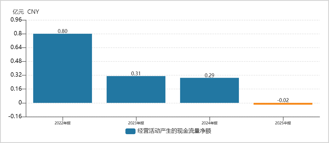 然而,公司盈利质量呈现明显下滑趋势。2025年上半年,经营现金流再度转为负值,为-247万元,与净利润高速增长显著背离。