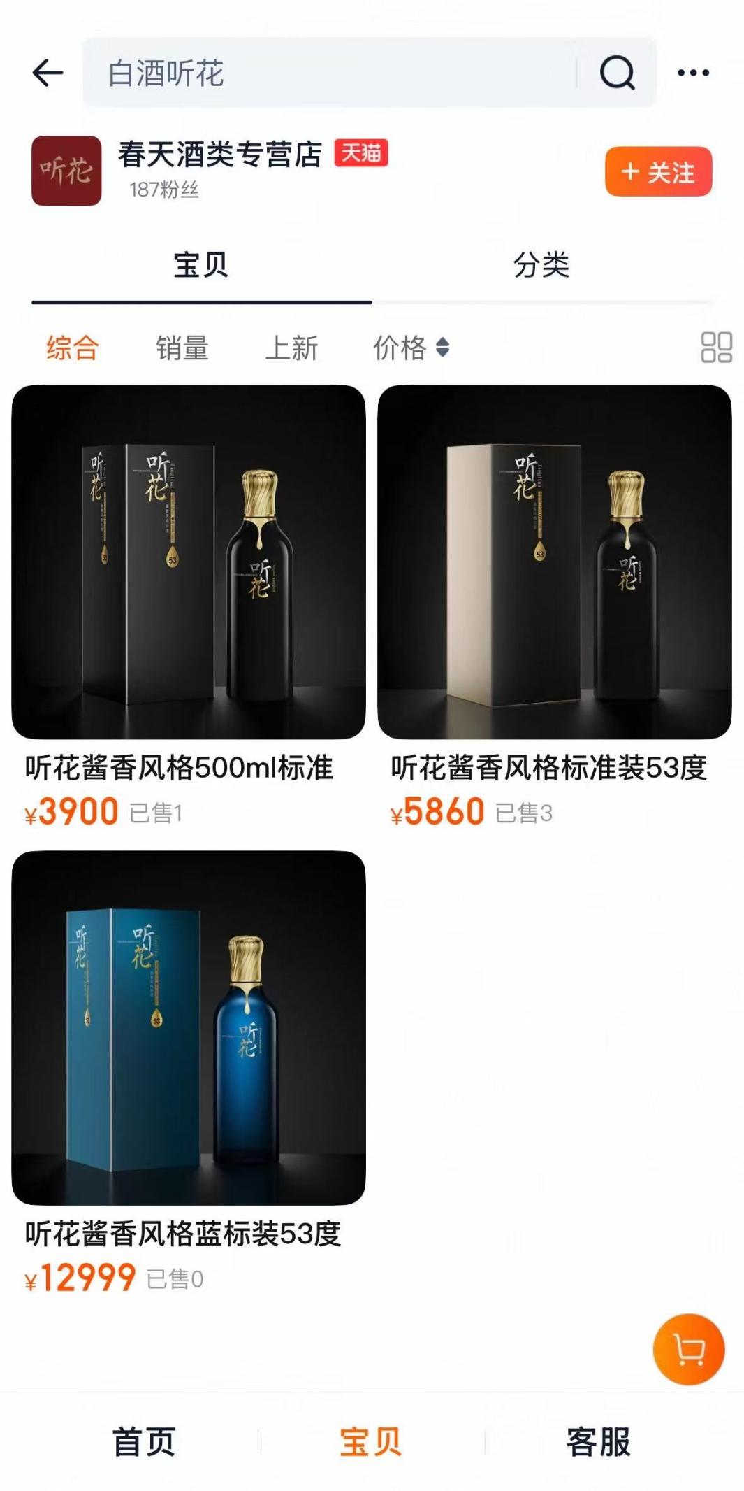 步入2025年,尽管青海春天经过前几年的大规模宣传后削减了销售费用,但从淘宝等平台数据来看,其销售情况仍不乐观。售价5860元的听花酒PLUS版酱香标准装53度750ml仅3人付款,12999元的蓝标装则无人问津。