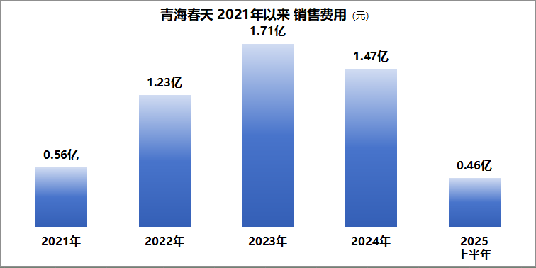 值得注意的是,为提升听花酒在全国的知名度,青海春天可谓是不遗余力。除了凭借比茅台还高的价格让人印象深刻外,还在购物中心、户外平台、楼宇等多个场所展开无死角宣传。然而,这背后带来的是高昂的销售费用支出。在“3·15”晚会前一年的2023年,青海春天的销售费用高达1.71亿元,且近3年来,公司每年的销售费用支出均超过1亿元,相较于之前实现翻番增长。