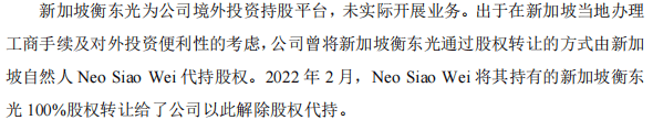 在瞭望塔财经看来,境外子公司的历史股权代持问题尚未完全澄清。新加坡和泰国子公司为何需要代持?解除过程是否合规?这些疑问都需要蘅东光给予市场更明确的解释。