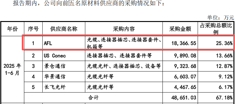 更令人担忧的是,AFL同时是蘅东光的第一大供应商。2025年上半年,蘅东光向AFL采购金额达1.84亿元,占比25.36%。这种深度绑定的关系意味着蘅东光的业务独立性存疑。