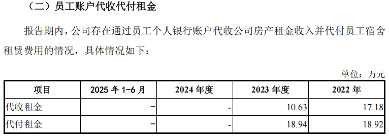 报告期内,公司存在通过员工个人银行账户代收公司房产租金收入并代付员工宿舍租赁费用的情况。公司还存在现金交易及现金支付薪酬、报销费用的情形。