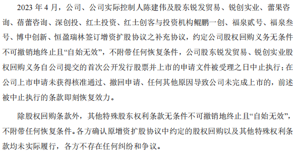蘅东光的IPO背后有着强烈的对赌协议倒逼因素。2023年4月,公司与投资机构签订增资扩股协议之补充协议,约定股权回购义务自公司提交IPO申请文件被受理之日中止执行。