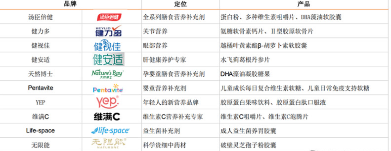 目前,汤臣倍健针对身体器官、年龄阶段、营养原料和消费场景的不同,经过多年细分市场领域的拓展,已经拥有健力多、YEP、健视佳、健安适、维满C等多个子品牌。并在2018年收购了澳大利亚的益生菌品牌Life-Space和儿童营养补充剂品牌Pentavite,构建起了全品类、全人群覆盖的产品线布局。其产品不但畅销国内,也在东南亚有效开辟市场,未来海外空间也有望逐步打开。