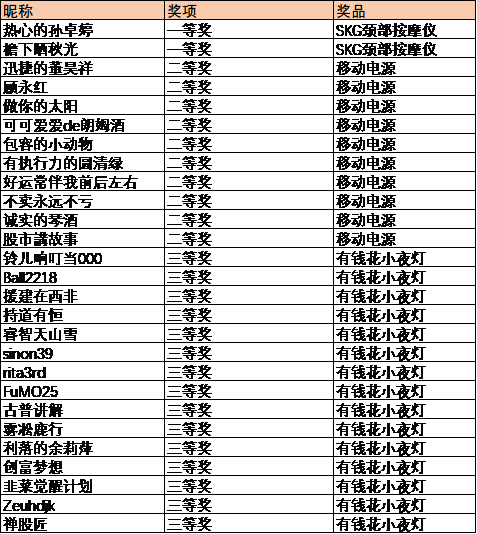 为回馈小伙伴们的热情,现根据活动规则公布本次获奖的用户名单: