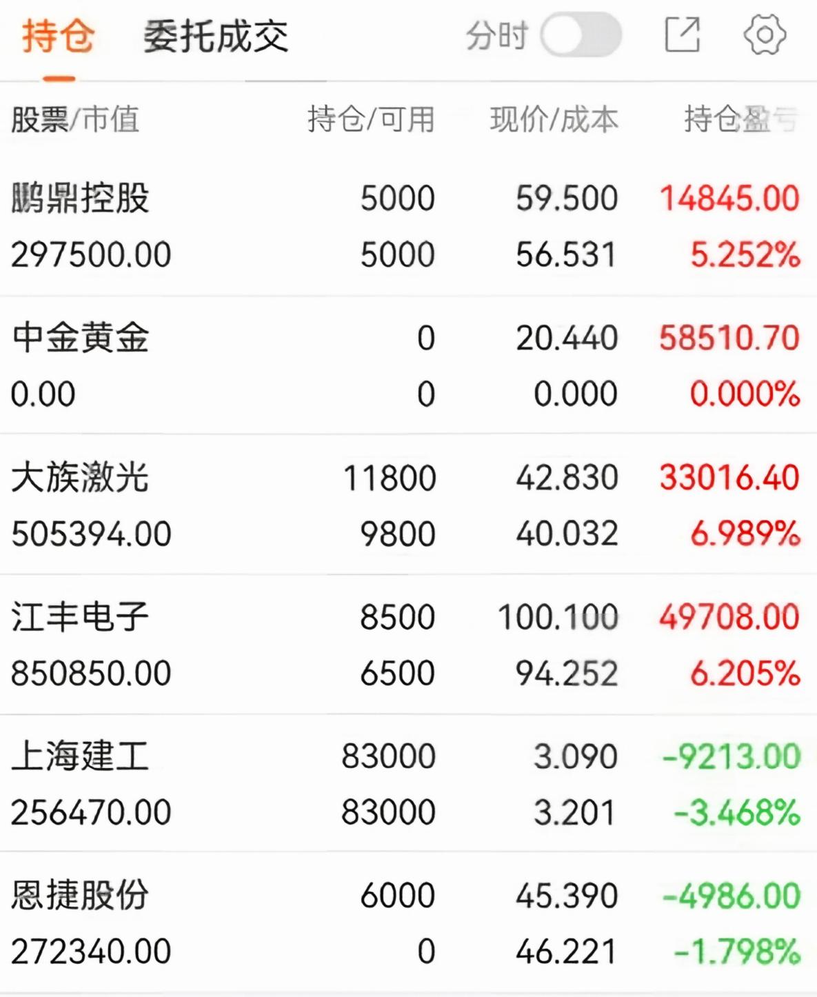 今天中金黄金开盘小幅震荡后逐渐上涨。但是上涨动能并不强,国际金价又开始回调整理了,由于其走势受国际金价影响明显。我们主动选择了高位获利走人,落袋为安。也恭喜跟上了的友友喝酒吃肉。昨天晓程科技也是跑的快,跑了就下跌。