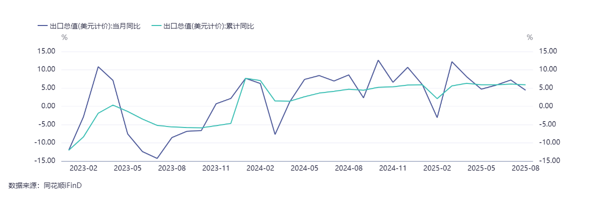 8月出口同比增长4.4%,基本符合季节性规律。从产品看,包括纺织、箱包、服装等劳动密集型产品出口增速整体偏弱,此外电子产品和手机出口增速较低。出口增速较高的主要为集成电路、汽车、船舶等高端装备,此外通用机械设备的出口表现也相对较好。目前,我国制造业出口的领军行业即高端装备,此外锂电池等新兴产业链增速也相对较快。