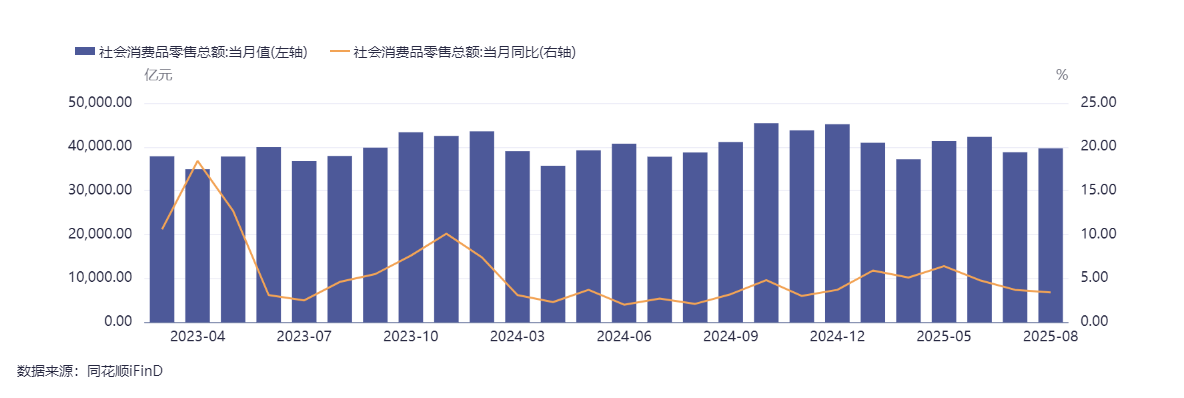 8月社会消费品零售总额同比增速3.4%,同比增速较前值回落0.3个百分点,低于市场预期。受到消费品以旧换新政策力度有所消退因素影响,家电、通讯器材、家具等品类消费增速有所回落。金银珠宝和汽车等消费小幅回升。服务消费虽然出现小幅反弹,但仍然处于较低水平,主要受到餐饮收入下降的拖累,与政策端严查违规吃喝有关。