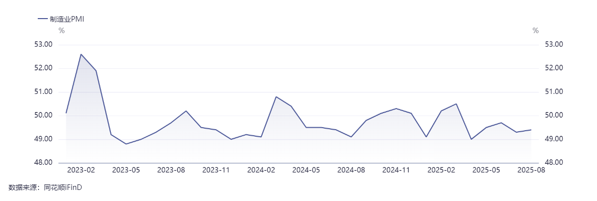8月制造业PMI为49.4%,较上月回升0.1个百分点但继续位于荣枯分界线以下,制造业继续表现弱势。