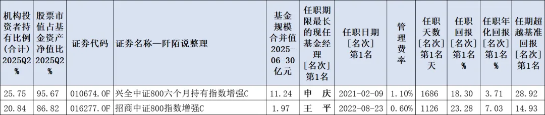 5、2只中证800指数增强基金单独展示如下,上榜的是申庆、王平的基金。