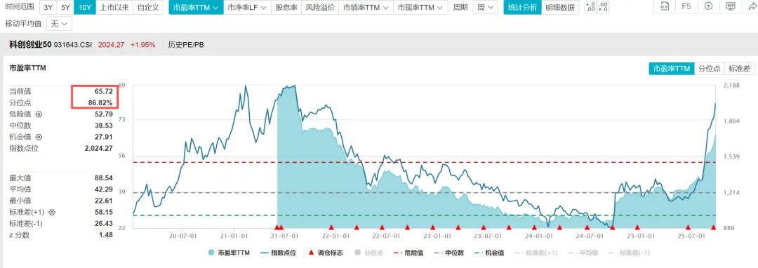 6.3、根据WIND数据,截至2025年9月25日,科创创业50指数的市盈率TTM=65.72倍,处于历史估值百分位86.82%的位置;市净率=7.08倍,处于历史估值百分位81.82%的位置;股息率0.78%,处于历史估值百分位46.36%的位置。