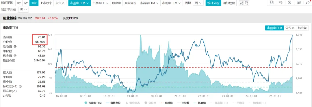 6.1、根据WIND数据,截至2025年9月25日,创业板综指数的市盈率TTM=75.01倍,处于近十年估值百分位65.75%的位置;市净率=4.50倍,处于近十年估值百分位61.25%的位置;股息率0.78%,处于近十年估值百分位81.41%的位置。