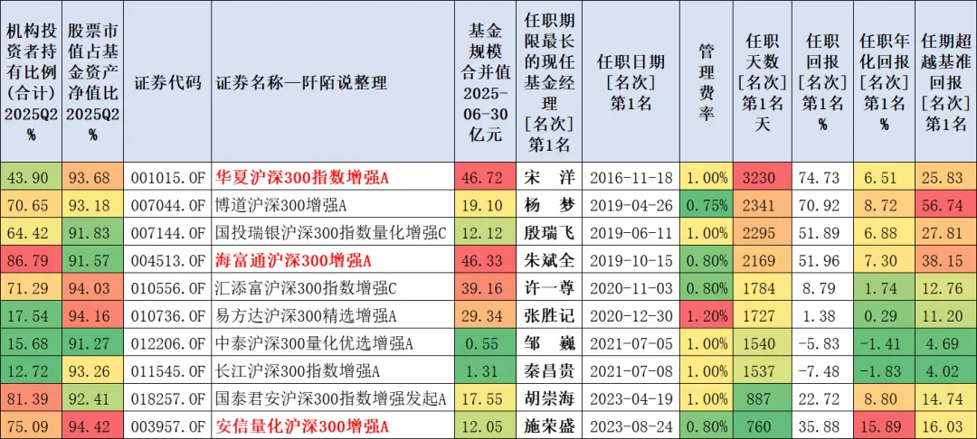 1、10只沪深300指数增强基金单独展示如下:建议关注宋洋、杨梦、殷瑞飞、朱斌全等。$华夏沪深300指数增强A(OTCFUND|001015)$$海富通沪深300指数增强A(OTCFUND|004513)$$汇添富沪深300指数增强C(OTCFUND|010556)$#社区牛人计划##基金投资指南##炒股日记#@天天基金网 @天天基金研究中心 @天天基金创作者中心