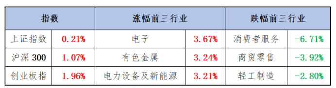 一、市场冲高回落,电子和有色金属等板块表现相对较好