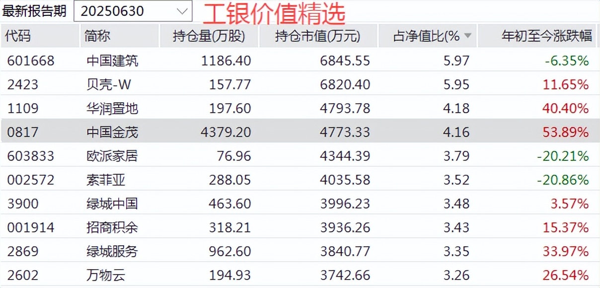 2)“工银价值精选(尤宏业)”是当下唯一一只大仓位聚焦地产、地产链的主动基金,而且持仓以港股地产股为主。