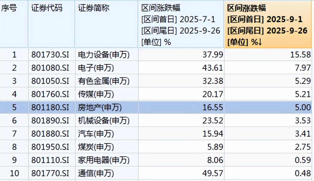 9月以来涨了5%,仅次于新能源、半导体、有色金属、传媒,在31个申万一级行业中排名第5。