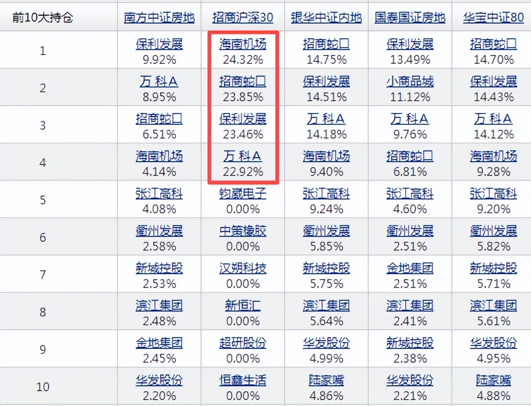 其他几只基金区别不大,基本囊括了A股主要地产股,收益率也比较接近。