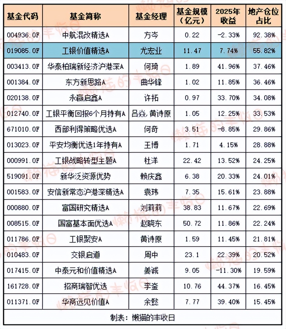 2025年2季度,地产仓位占比超过30%的基金一共才6只。