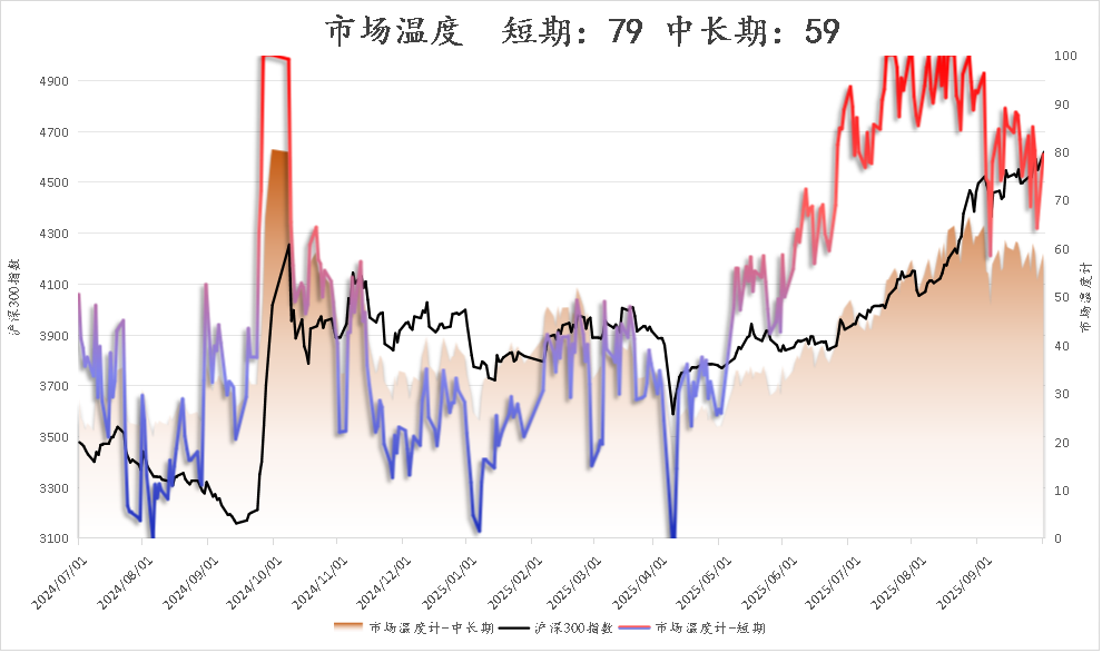 特别说明:市场温度计计算方式,采用6个每日高频指标过去一定期间的分位数作为市场情绪指标:期权波动率、风格因子、股指期货基差、融资净买入占比、股债回报差、创新高占比;市场温度计(中长期)时间周期为最近一年;市场温度计(短期)时间周期为最近100个交易日。市场温度最后结论会结合近期事件综合给出判断,包含一定的主观成分,仅供参考,不作为投资依据。
