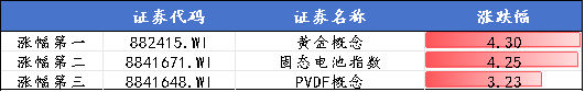 9月29日,黄金概念、固态电池指数、PVDF概念领涨。