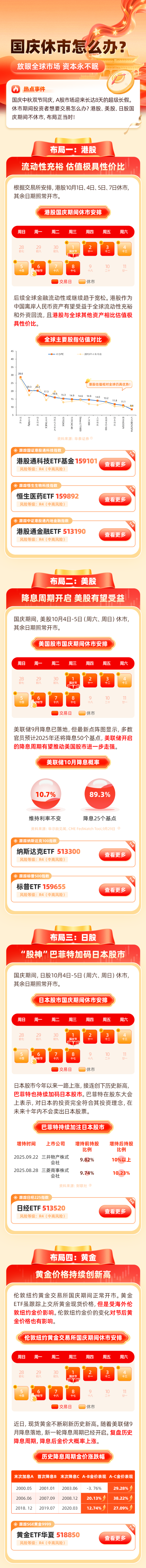 T+0特别风险提示:港股通科技ETF基金、恒生医药ETF、港股通金融ETF、纳斯达克ETF、标普ETF、日经ETF均为跨境ETF,实行T+0回转交易机制(即当日买入,在交收前可以于当日卖出),资金运作周期缩短,可能带来短期波动风险。港股通科技ETF基金、恒生医药ETF、港股通金融ETF均为境外证券投资的基金,主要投资于香港证券市场中具有良好流动性的金融工具。除了需要承担与境内证券投资基金类似的市场波动风险等一般投资风险之外,还面临香港市场风险等境外证券市场投资所面临的特别投资风险,包括港股市场股价波动较大的风险、汇率风险、港股通机制下交易日不连贯可能带来的风险等。