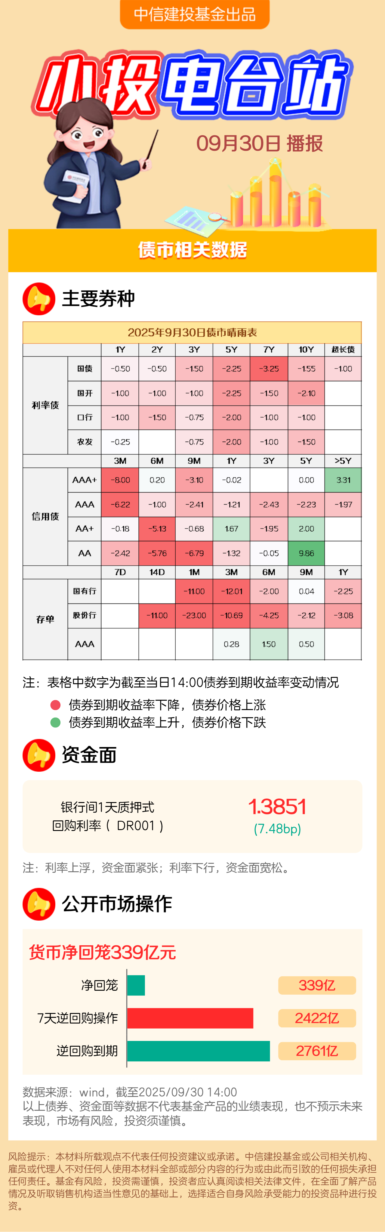 截至2025/9/30下午两点,债市盘中天气 :