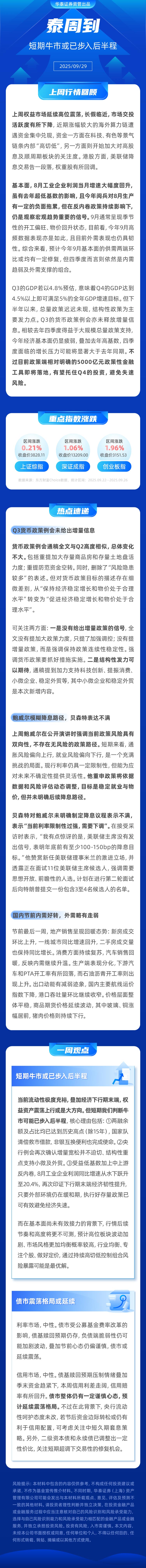 上周权益市场延续高位震荡,长假临近,市场交投活跃度有所下降,近期涨幅较大的海外算力链遭遇资金集中兑现,资金一方面在科技、有色等景气链条内部“高切低”,另一方面则开始加大对高股息及顺周期板块的关注度。港股方面,美联储降息交易告一段落,权重股有所回调。