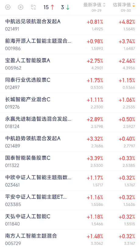欢迎提出希望被播报的基金!!!按照收益率排名,如原来基金看不到了,说明收益太低了!基金估值只是模拟,收益率仅供参考$万家人工智能混合C(OTCFUND|014162)$$天弘中证人工智能C(OTCFUND|011840)$$中欧中证人工智能主题指数发起C(OTCFUND|023462)$#黄仁勋:OpenAI将是万亿美元巨头#