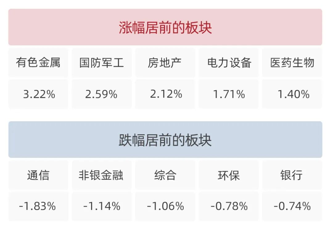 走强板块方面,有色金属、国防军工和房地产板块领涨。Wind数据显示,有色金属板块方面,工业和信息化部等八部门联合印发《有色金属行业稳增长工作方案(2025—2026年)》,提出2025—2026年行业增加值年均增长5%左右等目标,政策面对板块形成推动作用;国防军工板块方面,随着“十五五”规划临近,市场对新一阶段装备建设启动存在预期,为行业带来内需增长想象空间;房地产板块方面,国务院新闻办公室举行新闻发布会明确“四取消、四降低、两个增加”政策,包括取消限购等限制性措施、降低购房成本、增加城中村改造规模及信贷支持等内容,政策持续催化下板块呈现回稳态势。