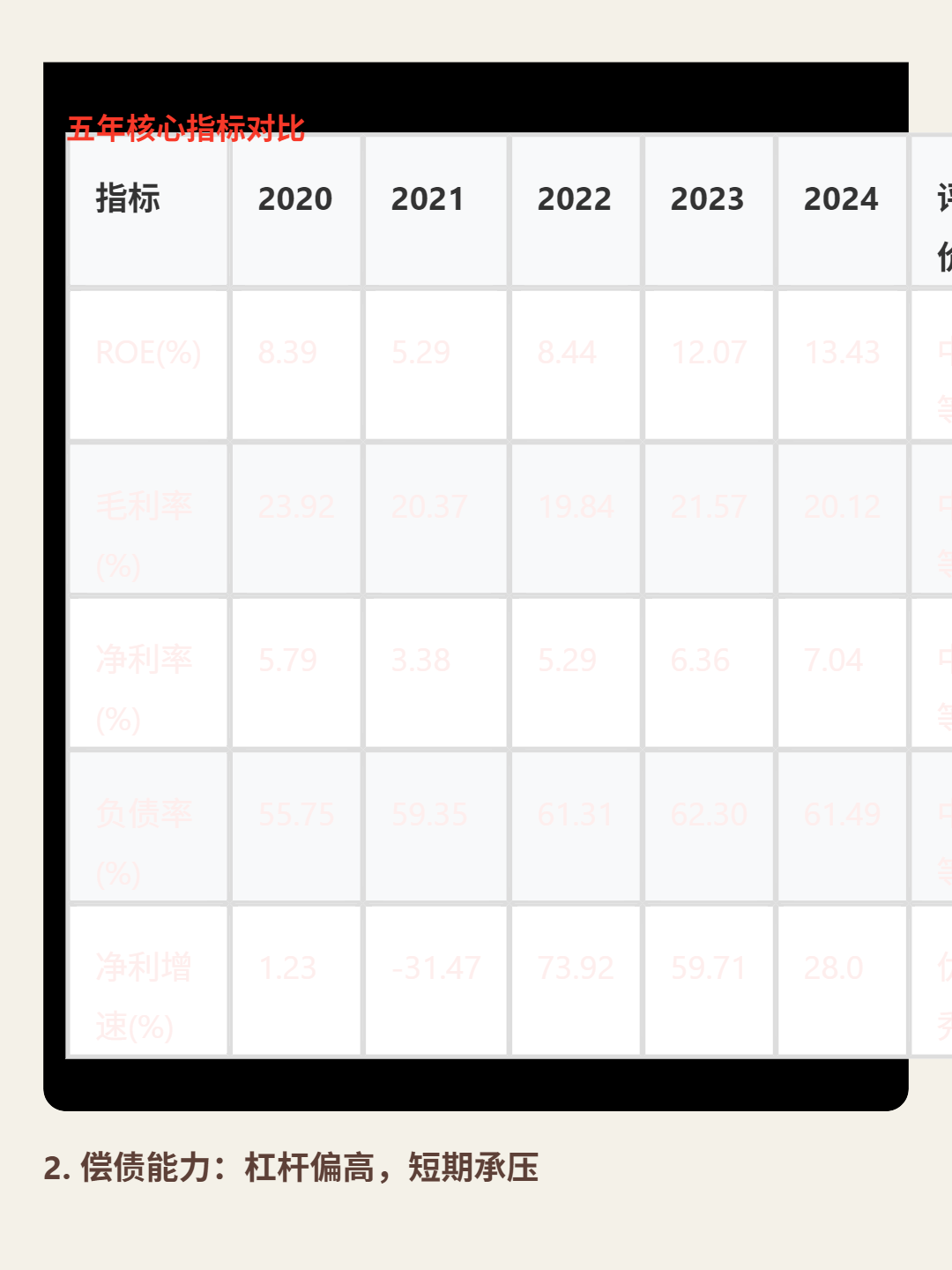 以上是公司行业分析和近 5 年财务数据分析。完整报告里还有它的估值高低(是机会还是陷阱?)、未来有哪些潜在风险?以及是否符合‘好公司+好价格’的评价?打开【口袋分析师】小程序即可获得完整报告。