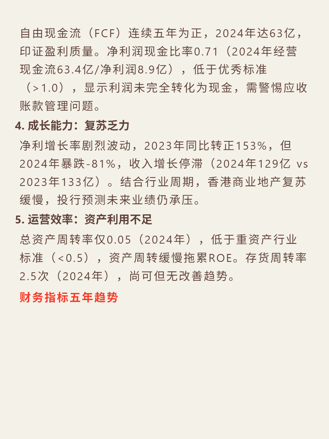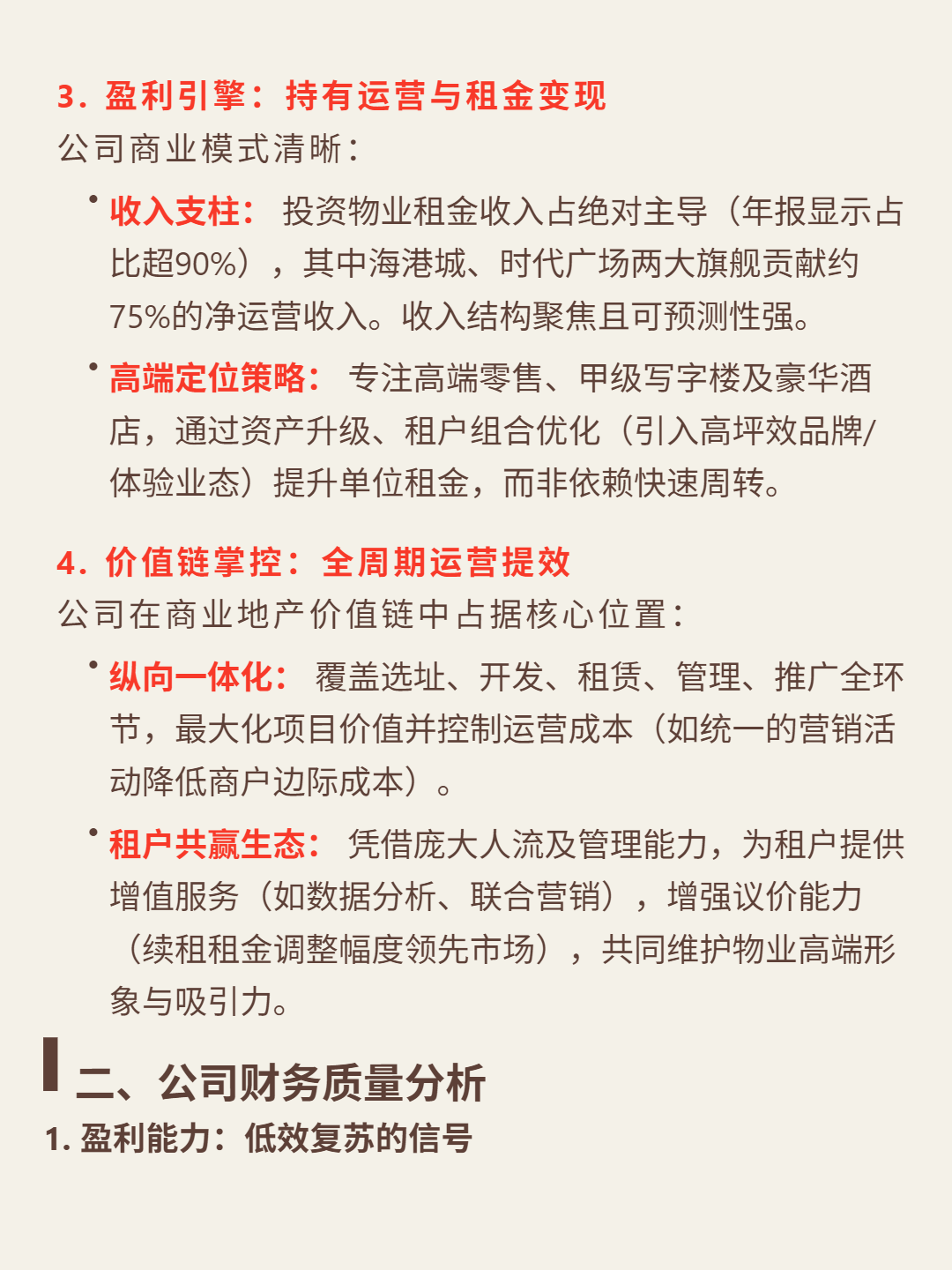 行业关键:核心地段稀缺性构筑高壁垒,但依赖内地游客消费。2024年业绩反映香港商业地产复苏乏力,投行预测未来仍承压。需关注内地出入境政策及本地消费信心变化。