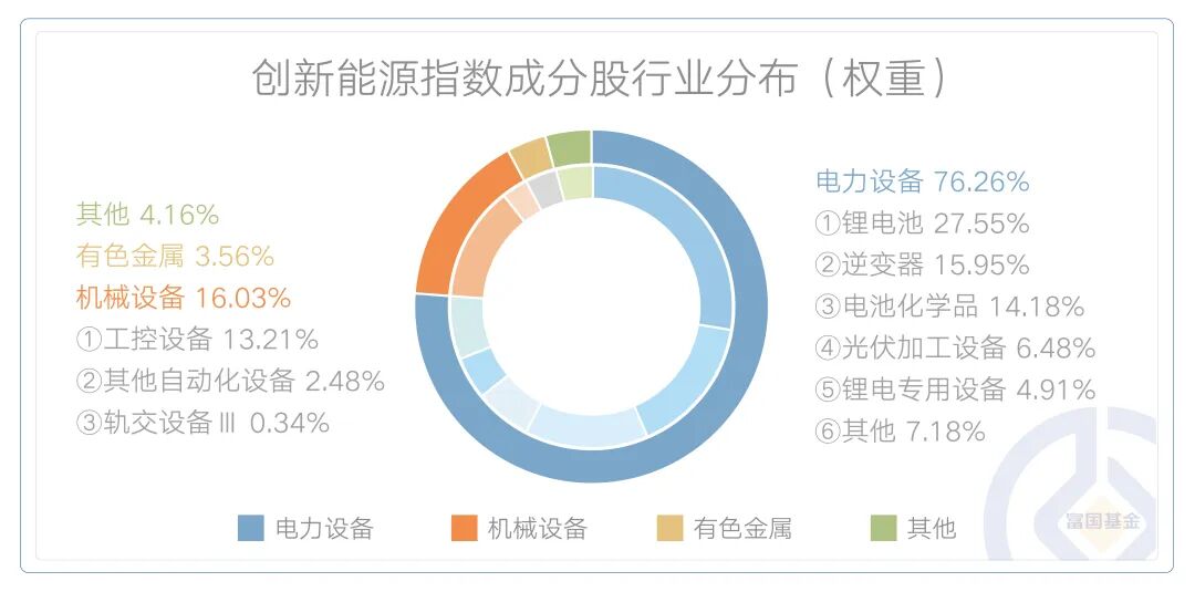 创新能源指数高度聚焦于电力设备与机械设备行业,合计权重超92%;细分领域中,锂电池(27.55%)、逆变器(15.95%)、电池化学品(14.18%)、工控设备(13.21%)等核心环节含量较高,形成了一张清晰的“新能源核心产业链地图”。