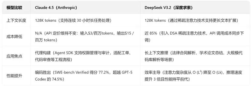 一周之内,Anthropic发布Claude 4.5(Sonnet 4.5),强调长上下文推理和工具集成;同时,,DeepSeek推出V3.2,声称将长上下文计算成本降低超50%。