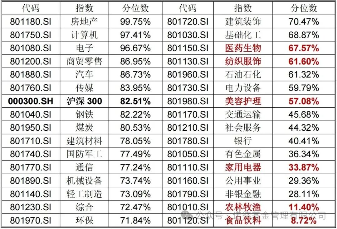 截至2025年9月23日,食品饮料板块的估值处于过去十年约9%的分位数水平,农林牧渔、家用电器板块也分别降至11%、34%分位数水平附近,均处于历史相对低位区间。横向来看,与其他申万一级行业相比,消费核心板块的估值分位数亦处于相对低位。这种显著的估值分化,使得消费板块在当前市场环境下具备相对较高的安全边际和潜在的修复空间。